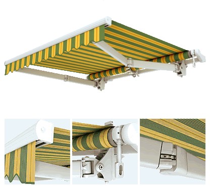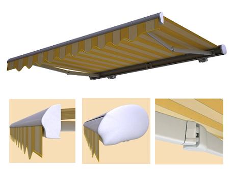 0pcjonalny aluminiowy daszek ochrania zwinętą tkaninę i podkreśla estetyczny wygląd całej markizy. Konstrukcja markizy lakierowana jest techniką proszkową na kolor biały.