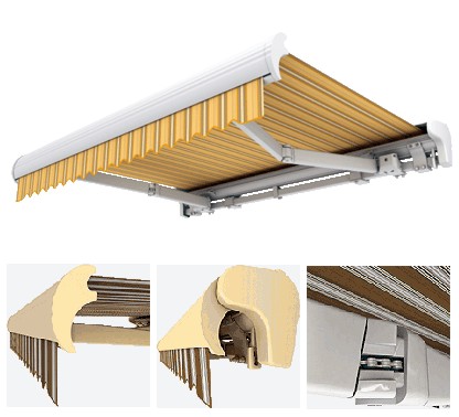 Palladio 2040 łączy w sobie cechy markizy kasetonowej z konstrukcją opartą na kwadratoowej belce nośnej. Pozwala korzystać w pełni z funkcjonalności markizy kasetonowej , czyniąc ją jednocześnie łatwą w montażu.